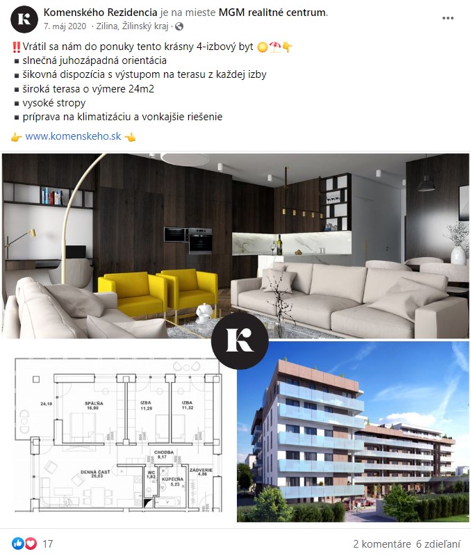 Komenského rezidencia prináša so sebou novú, exkluzívnu kvalitu života. Vyspelé bývanie v sebe zahŕňa okrem moderných technológií aj výnimočné architektonické stvárnenie bývalej budovy Stavebnej fakulty. Komenského rezidencia sa nachádza v pešej vzdialenosti od historického centra Žiliny a Bulváru, ktoré majú svoju špecifickú atmosféru. Blízkosť viacerých škôlok, základných či stredných škôl, obchodných centier Aupark a Mirage, divadiel, nemocnice, polikliniky, polície, mestského úradu a Bôrického parku všetko do 15 minút chôdze vytvára z tejto lokality a nového bývania žiadanú destináciu bez ohrozenia svojej investície do budúcnosti.