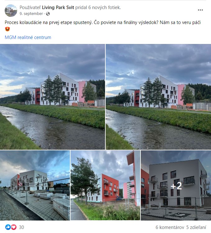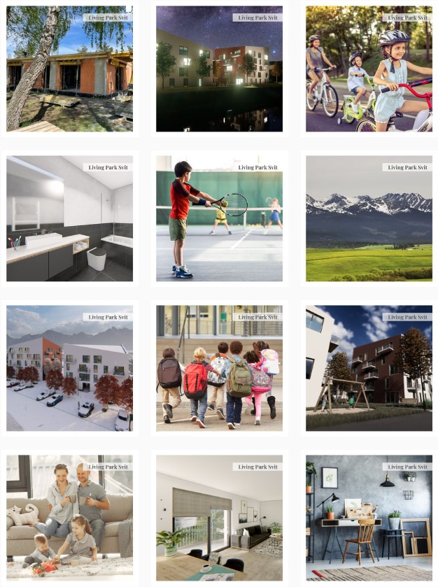 Myšlienka projektu Living Park Svit je poskytnúť pre nových majiteľov bytov dostatok súkromia, intimity. Bytové domy sú samostatne stojace viacpodlažné objekty s premenlivou výškou hrebeňa, umiestnený pozdĺžne popri hrádzy rieky Poprad v bezprostrednom susedstve cyklotrasy. Na prvom nadzemnom podlaží sa nachádzajú priestory pivníc, skladu bicyklov, vstupné priestory a byty s vlastnými záhradkami a terasami. Vyššie podlažia ponúkajú širokú variabilitu bytov od 1 izbové až po 5 izbové či unikátne loftové mezonety.